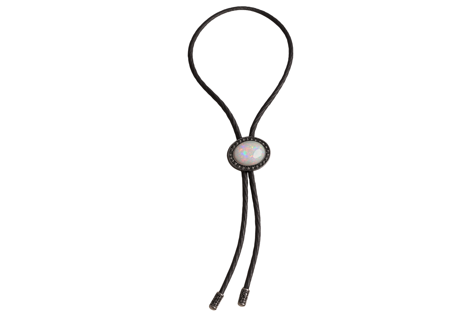Collier de 80 cm en cuir serti en or 18k orné d'une opale d'environ 32 carats, sertie de diamants.