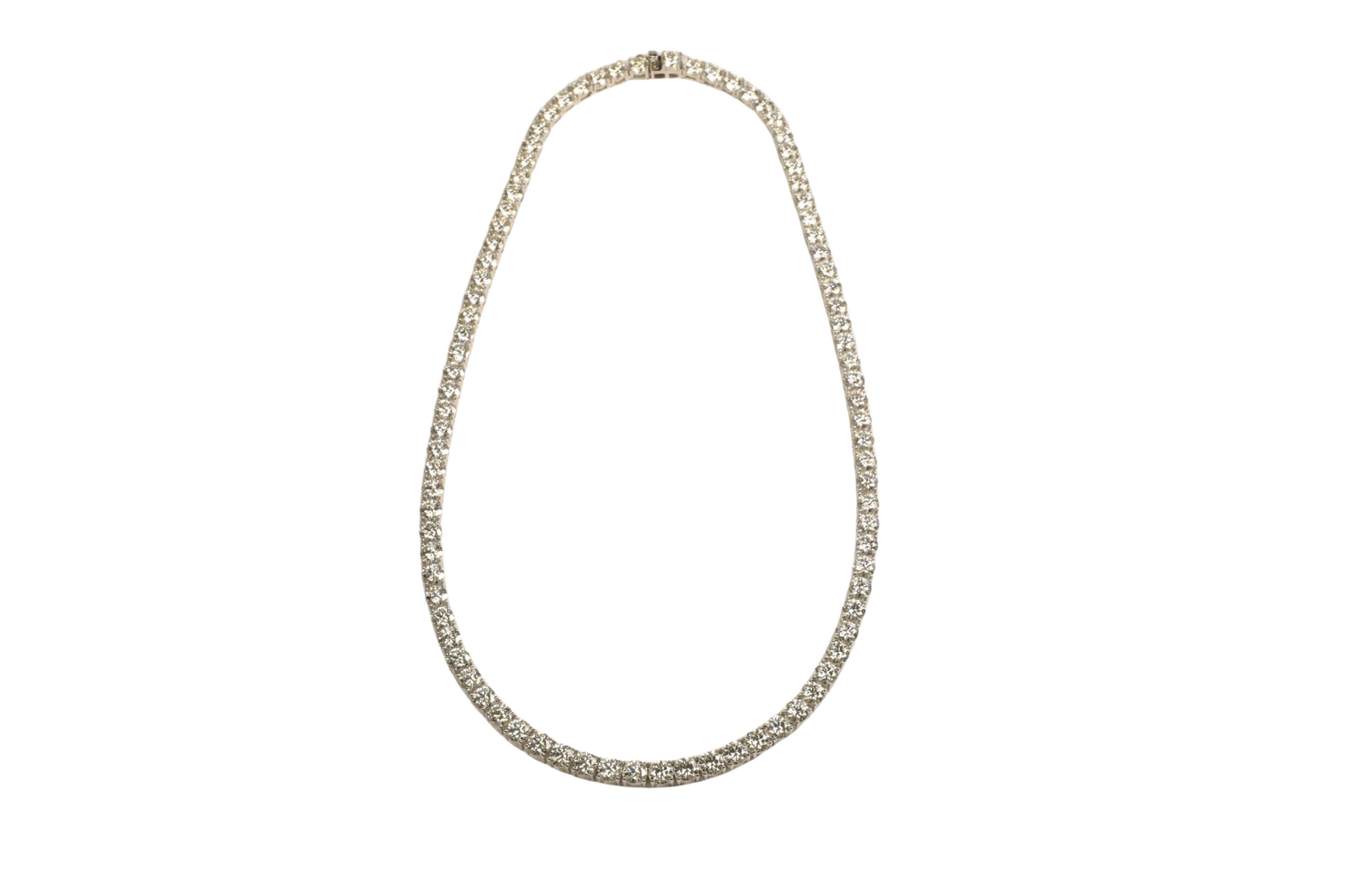 Collier serti de moissanites totalisant 46 carats, chaque pierre taillée en rond brillant de 0,5 mm, monture élégante et raffinée.